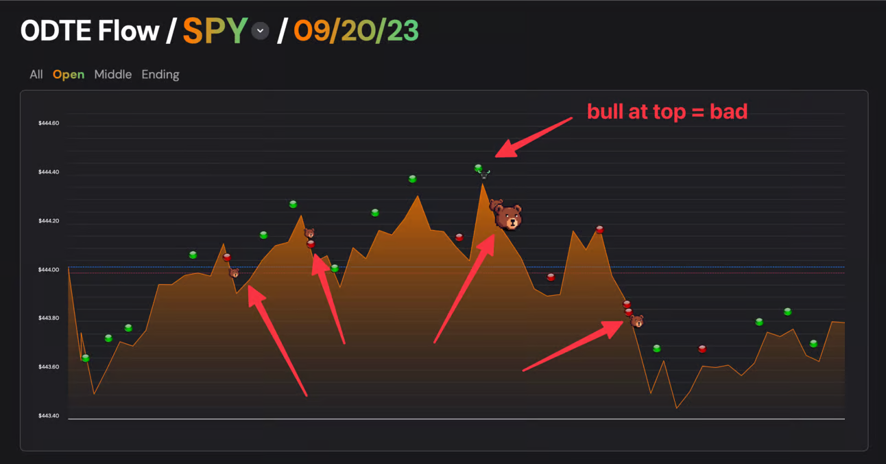 The optimal method of trading SPY on 9/20/23 was either taking profit on the early alerts and leaving runners (a few contracts) on until the end of the day or waiting for the BEAR alerts that happened in the ending session.
